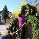 Besonderer Dank geht an alle, die den Osterbrunnenschmuck so hübsch dekorierten. Bei all diesen Helfern bedankten wir uns mit einem kleinen Blümchen.